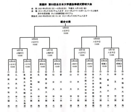 汗表本日(8月7日)、9月5日開会の「清瀬杯第53回全日本大学選抜準硬式野球大会」の抽選会がオンラインであり、