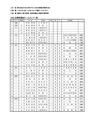 2022/第40回全日本大学9ブロック大会_関西選抜メンバー