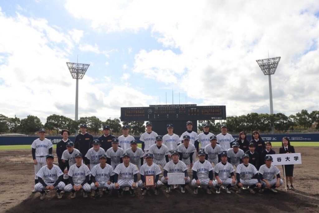 令和5年度秋季関西地区大学準硬式野球大会最終日の11日(土)は、昨日の雨天順延での決勝戦は、龍谷大学対兵庫医科大学神戸キャンパスの対戦となりましたが、兵庫医科大学神戸キャンパスが、5対4で龍谷大学を破り、初優勝を飾った。